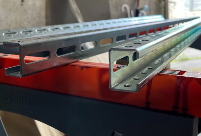 かしめナットに対して、コの字アングルをボルトで固定をしたら取り付けは完了です。