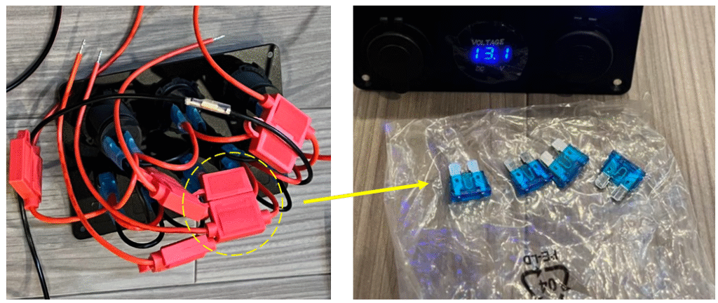 ・ヒューズはできるだけ電源(サブバッテリー)の近くに取り付ける